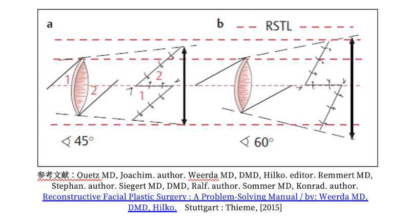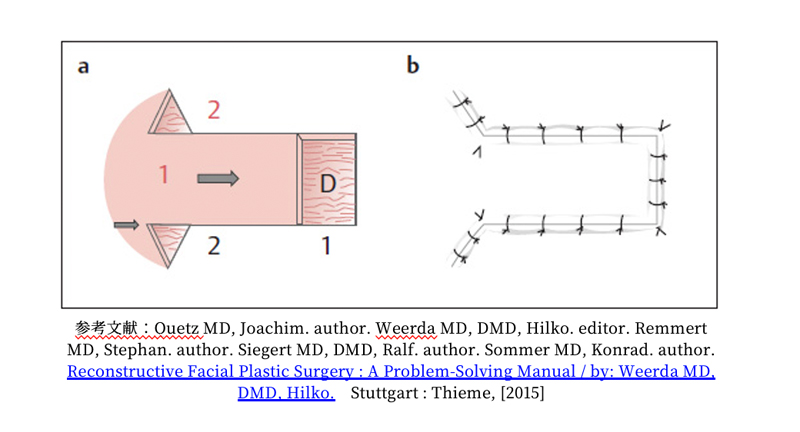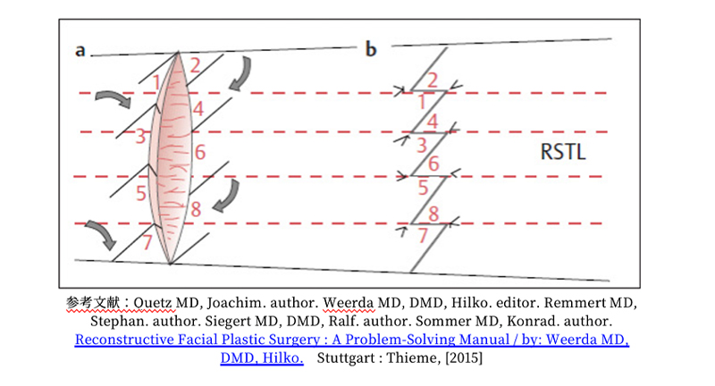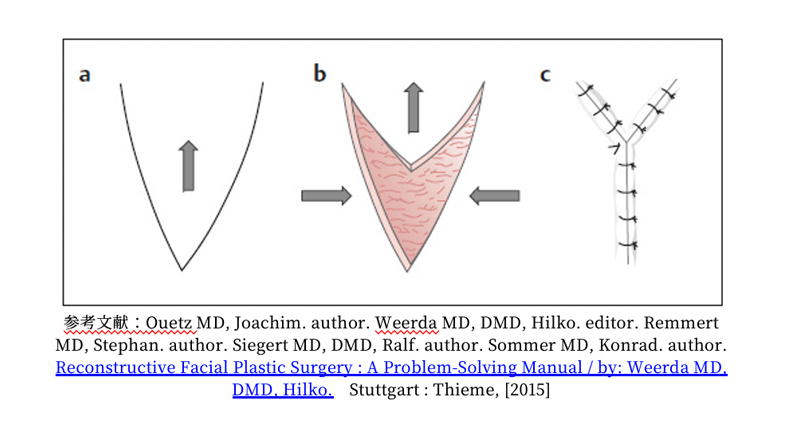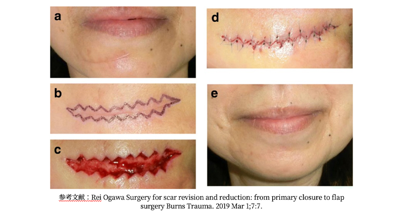 傷をZ字形に切り替えて縫合することで、引きつれを和らげたり、自然なシワの方向へ馴染ませる。