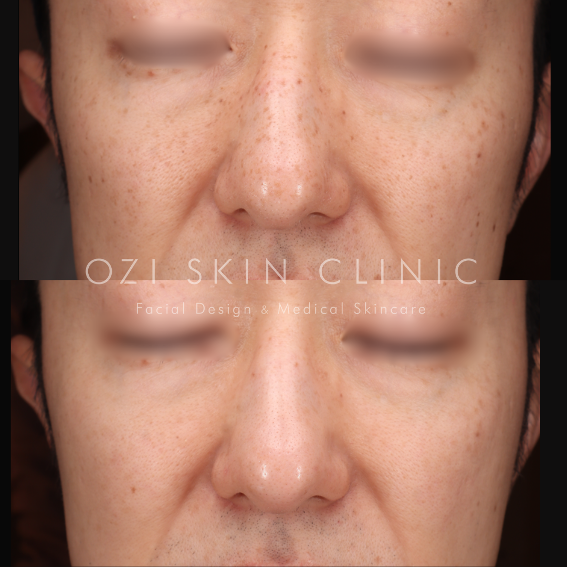 全顔照射の際に大切になるのが肌全体の評価です。肝斑の有無、日焼けの有無を確認し、必要におじて部位毎に設定を変えて照射していきます。また、肌状態によっては照射できないこともあるため、今の肌に本当にレーザーが適しているのかどうかも含めて診察させていただきます。